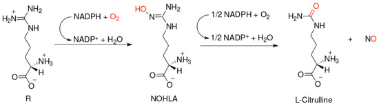 Scheme of nitric oxide (NO) formation from L-arginine in humans.