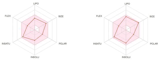 The bioavailability radar of compounds 6 (left) and 19 (right).