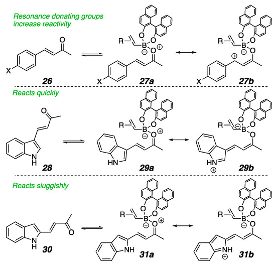Boylan, A.; Nguyen, T.S.; Lundy, B.J.; Li, J.-Y.; Vallakati, R.; Sundstrom, S.; May, J.A. Rate Dependence on Inductive and Resonance Effects for the Organocatalyzed Enantioselective Conjugate Addition of Alkenyl and Alkynyl Boronic Acids to β-Indolyl Enones and β-Pyrrolyl Enones. Molecules 2021, 26, 1615. https://doi.org/10.3390/molecules26061615