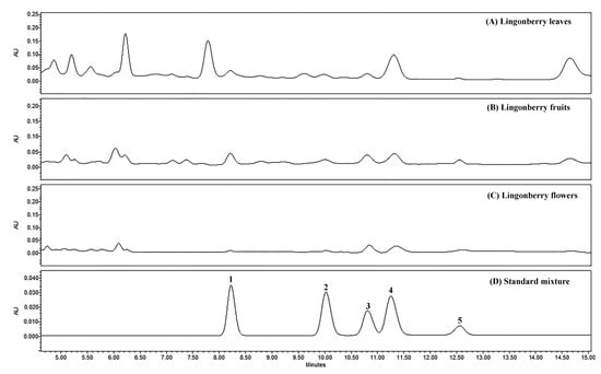 | Compound | Lingonberry Leaves | Lingonberry Fruits | Lingonberry Flowers |