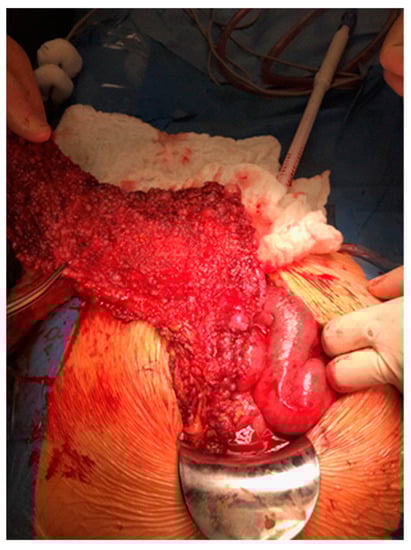 High-grade ovarian cancer‚ omental cake-like metastasis to the omentum in a 68-year old female; FIGO IIIC; 2019. University Oncology Center, Bialystok, Poland.
