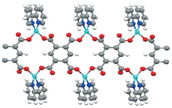 Structure of [Cu2(bipy)2(btec)]∞ catalyst. Reproduced with permission from [15]. Copyright (2015), The Royal Society of Chemistry, Amsterdam, The Netherlands.