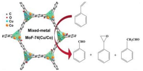 Cu and Co mixed metal–organic frameworks (MOFs) catalysts for styrene oxidation. Reproduced with permission from ref [18]. Copyright (2016), Elsevier B.V., Amsterdam, The Netherlands.