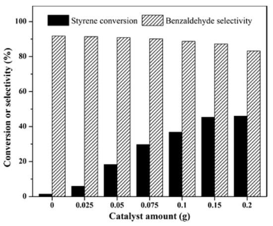 Influence of the catalyst amount on the oxidation of styrene (conditions: styrene 20 mmol, ZSM-5(60) catalyst, TBHP 30 mmol, acetonitrile 10 mL, 65 °C, time 6 h). Reproduced with permission from ref [43]. Copyright (2016) Springer, Amsterdam, The Netherlands.
