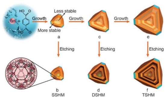 - Liu, W.; Huang, J.; Yang, Q.; Wang, S.; Sun, X.; Zhang, W.; Liu, J.; Huo, F. Multi-shelled hollow metal–organic frameworks. Angew. Chem. Int. Ed. 2017, 56, 5512–5516. [Google Scholar] [CrossRef] [PubMed]