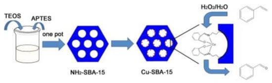 - Zhu, X.; Shen, R.; Zhang, L. Catalytic oxidation of styrene to benzaldehyde over a copper Schiff-base/SBA-15 catalyst. Chin. J. Catal. 2014, 35, 1716–1726. [Google Scholar] [CrossRef]