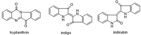 - Liau, B.C.; Jong, T.T.; Lee, M.R.; Chen, S.S. LC-APCI-MS method for detection and analysis of tryptanthrin, indigo, and indirubin in Daqingye and Banlangen. J. Pharm. Biomed. Anal. 2007, 43, 346–351. [Google Scholar] [CrossRef]