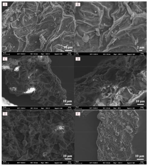 3.4. Morphological Characterization Observation of BCL by Scanning Electron Microscope (SEM)