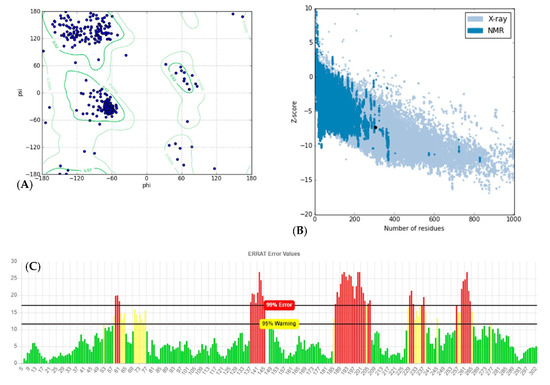 - Wiederstein, M.; Sippl, M.J. ProSA-web: Interactive web service for the recognition of errors in three-dimensional structures of proteins. Nucleic Acids Res. 2007, 35, W407–W410. [Google Scholar] [CrossRef] [PubMed]