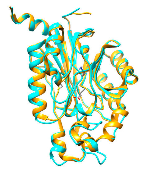 - Pettersen, E.F.; Goddard, T.D.; Huang, C.C.; Couch, G.S.; Greenblatt, D.M.; Meng, E.C.; Ferrin, T.E. UCSF Chimera—A visualization system for exploratory research and analysis. J. Comput. Chem. 2004, 25, 1605–1612. [Google Scholar] [CrossRef] [PubMed]