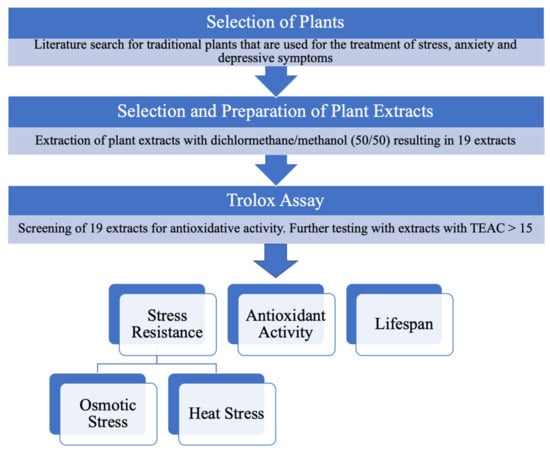 Chicago/Turabian StyleNaß, Janine, Christopher J. Kampf, and Thomas Efferth. 2021. "Increased Stress Resistance and Lifespan in Chaenorhabditis elegans Wildtype and Knockout Mutants—Implications for Depression Treatment by Medicinal Herbs" Molecules 26, no. 7: 1827. https://doi.org/10.3390/molecules26071827