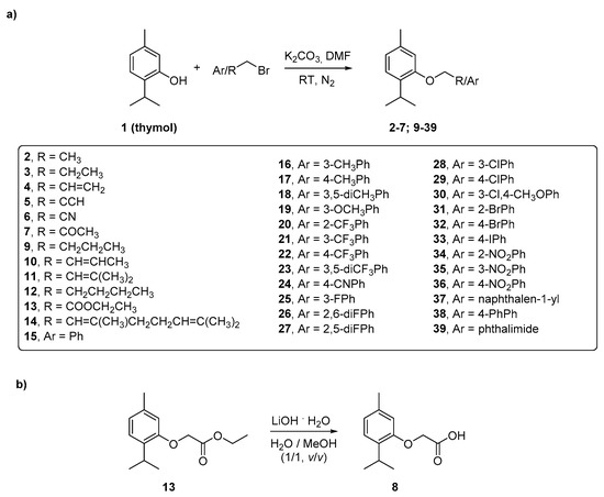 3.3. Characterization Data for Thymol Derivatives 2–39