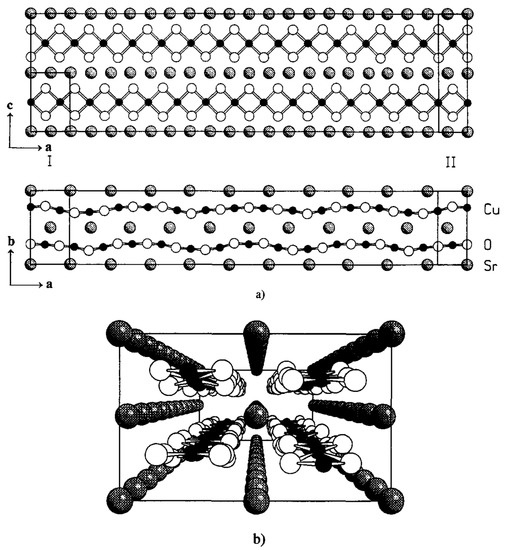 - McCarron, E.M., III; Subramanian, M.A.; Calabrese, J.C.; Harlow, R.L. The incommensurate structure of (Sr14-xCax)Cu24O41 (0 ≤ x ~ 8) a superconductor byproduct. Mat. Res. Bull. 1988, 23, 1355. [Google Scholar] [CrossRef]