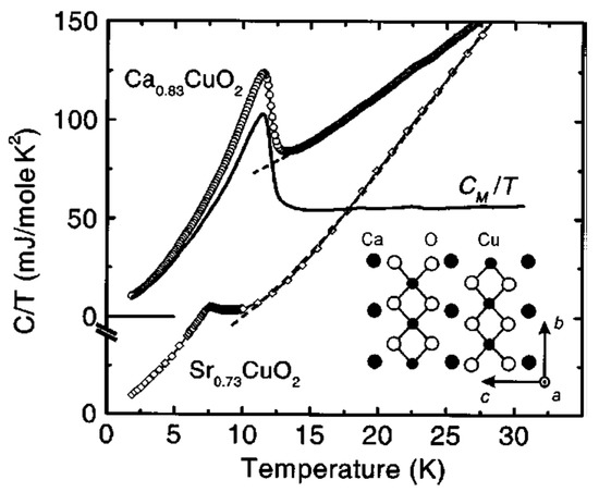 - Karpinski, J.; Schwer, H.; Meijer, G.; Conder, K.; Kopnin, E.; Rossel, C. High-oxygen-pressure synthesis, structure and properties of the infinite-chain compound Sr0.73CuO2. Phys. C Supercond. 1997, 274, 99–106. [Google Scholar] [CrossRef]
