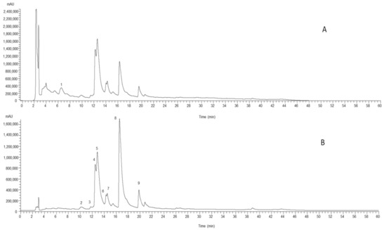3.3. Analysis of Phenolic Compounds