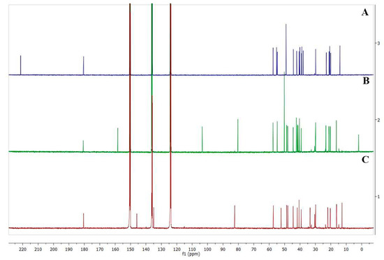 Several approaches have been discussed in previous sections, all of them provide important information for the structure elucidation of the DGs but still those approaches do not fully elucidate the structures of several DGs. The oligosaccharides at position C-19 and isomeric aglycones are not easily identified using previous methods. There is no doubt that NMR is the most powerful technique for the structure elucidation of any compound if an appropriate amount and purity are in hand. Steviol is the main aglycone in DGs from S. rebaudiana, although other natural and degradation cores have also been reported (Figure 1). As far as we know, only steviol, isosteviol, endo steviol and the aglycone with the hydrated double bond at 16,17 (Figure 1V) have been isolated as the aglycone forms. The 13C-NMR spectra for the aglycones of isosteviol, steviol and endocyclic steviol isomer are shown in Figure 6. The 1H and 13C NMR chemical shifts of the main aglycones found in S. rebaudiana or in DGS from leaves of this plant are listed (Table 4).