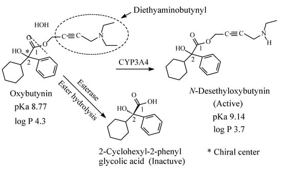 - Metabolism of Oxybutynin. Available online: https://www.drugbank.ca/metabolites/DBMET00381 (accessed on 10 September 2020).