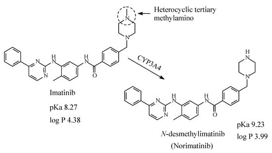 - Gschwind, H.P.; Pfaar, U.; Waldmeier, F.; Zollinger, M.; Sayer, C.; Zbinden, P.; Hayes, M.; Pokorny, R.; Seiberling, M.; Ben-Am, M.; et al. Metabolism and disposition of imatinib mesylate in healthy volunteers. Drug Metab. Dispos. 2005, 33, 1503–1512. [Google Scholar] [CrossRef]