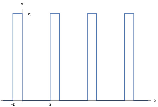 In the model of Kronig and Penney [2], one deals with non-interacting electrons moving in the periodic one-dimensional potential, as shown in Figure 1: