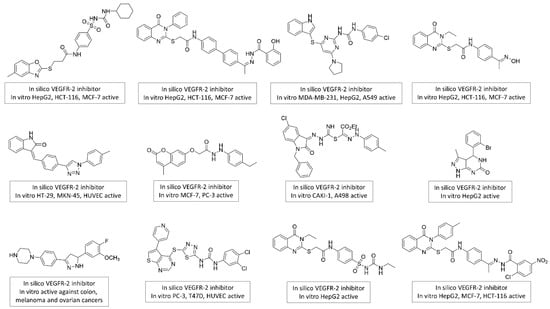 Recently reported drug candidates that proved to inhibit VEGFR-2 and emerged as effective molecules against various cancers.