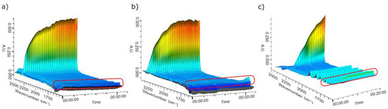 In situ IR spectroscopic measurements of the reaction of CO2 and (a) Ce(tBu2pz)4 (1), (b) Ce(Ph2pz)4 (2), and (c) Ce(tBuMepz)4 (3) at −20 °C. The wavenumber of the C=O band is marked with a red box.
