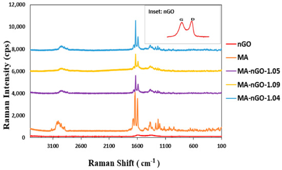Raman spectra of pure MA and MA-nGO composites.
