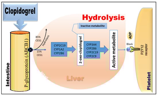 - Kazui, M.; Nishiya, Y.; Ishizuka, T.; Hagihara, K.; Farid, N.A.; Okazaki, O.; Ikeda, T.; Kurihara, A. Identification of the human cytochrome P450 enzymes involved in the two oxidative steps in the bioactivation of clopidogrel to its pharmacologically active metabolite. Drug Metab. Dispos. 2010, 38, 92–99. [Google Scholar] [CrossRef]