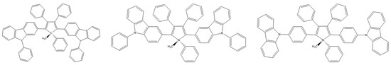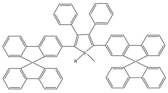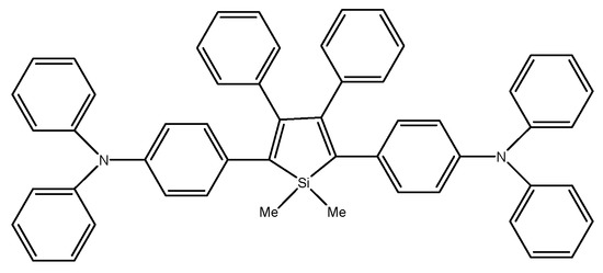 Among all materials belonging to AIE, silole-based compounds are readily used in OLEDs due to their high thermal stability, good electronic mobility, and affinity, and moreover, they exhibit high solid-state fluorescence quantum efficiency—some compounds achieve efficiency up to 100% [76,77].