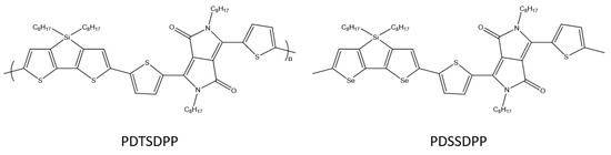 - Pao, Y.C.; Yang, C.T.; Lai, Y.Y.; Huang, W.C.; Hsu, C.S.; Cheng, Y.J. Synthesis and Field-Effect Transistor Properties of a Diseleno[3,2-b:2′3′-d]silole-Based Donor-Acceptor Copolymer: Investigation of Chalcogen Effect. Polym. Chem. 2016, 7, 4654–4660. [Google Scholar] [CrossRef]