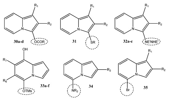 Examples of 3(5)-substituted indolizines involved in cycloaddition (see