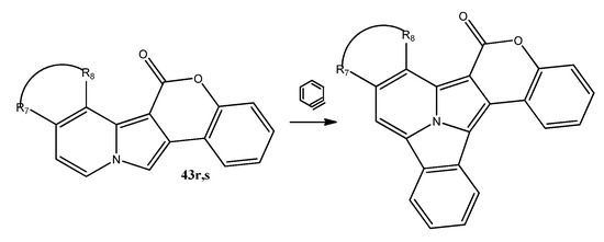 CsF, MeCN, 90°. 43r (R7R8 = H, 93%), 43s (R7,R8 = benzo, 62%), Method A.