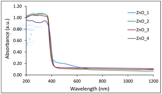 | ZnO_4 | 42; 244 | 0.358 | −16.2 | Bimodal distribution with a major population at 42 nm and aggregates at 244 nm. Few larger aggregates. |