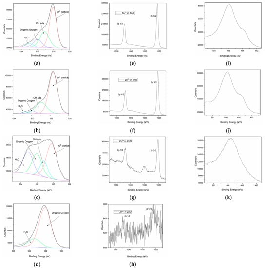 - Al-Gaashani, R.; Radiman, S.; Daud, A.R.; Tabet, N.; Al-Douri, Y. XPS and Optical Studies of Different Morphologies of ZnO Nanostructures Prepared by Microwave Methods. Ceram. Int. 2013, 39, 2283–2292. [Google Scholar] [CrossRef]
