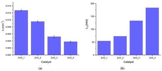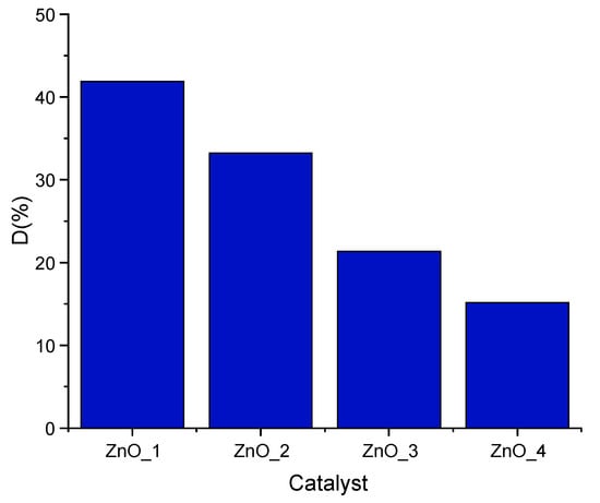 - Saravanan, R.; Gupta, V.K.; Narayanan, V.; Stephen, A. Comparative Study on Photocatalytic Activity of ZnO Prepared by Different Methods. J. Mol. Liq. 2013, 181, 133–141. [Google Scholar] [CrossRef]
