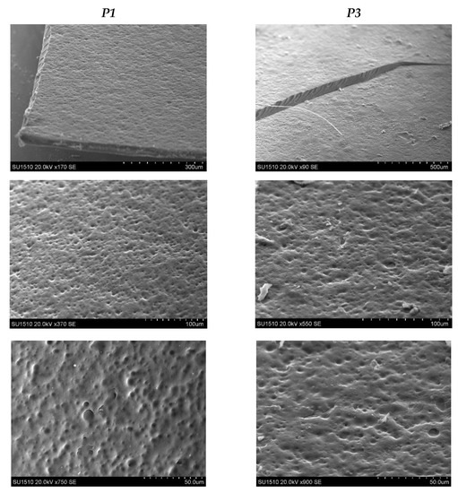 Scanning electron microscopy photographs on the P1 and P3 films surface.
