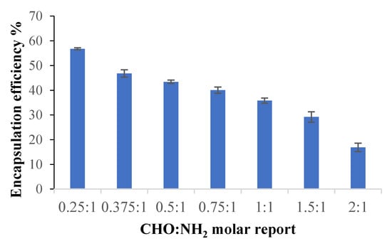 Curcumin encapsulation efficiency in CS/CMCOx films obtained at different CHO: NH2 molar ratios.