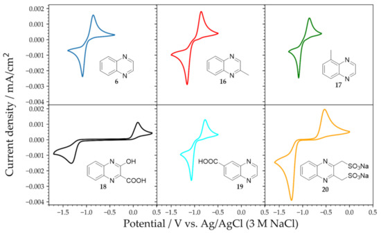 - Fischer, O.; Thuy, T.H. Beitrag zum elektrochemischen Verhalten des Chinoxalins im wässrigen Medium. Collect. Czechoslov. Chem. Commun. 1976. [Google Scholar] [CrossRef]
