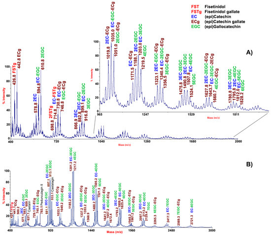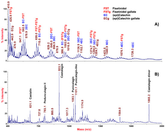 2.2. MALDI-TOF-MS Profiling of Polyphenols from Chestnut Pericarp and Integument Tissues
