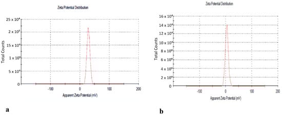 (a) Zeta potential of cs-TPP NPs. (b) Zeta potential of n-hexane cs-NPs.