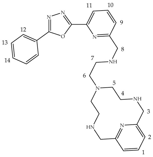 Compound L, or 6-{2-[N-(6-(5-phenyl[1,3,4]oxadiazole-2-yl)-2-pyridyl)methylamino]ethyl}-3,6,9-triaza-1-(2,6)-pyridinacyclodecaphane, and the mononuclear [ZnL](ClO4)2 complex were obtained following the synthetic procedures reported in [42].
