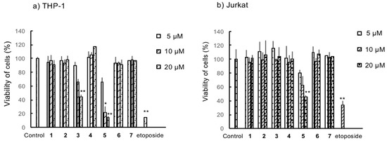 2.2. Inhibition of Cell Growth in THP-1 and Jurkat Cells