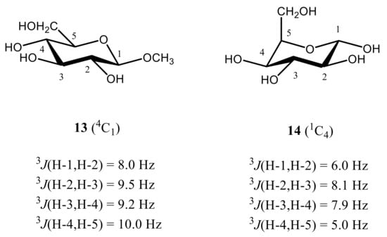- Serianni, A.S. Carbohydrate Structure, Conformation and Reactivity: NMR Studies with Stable Isotopes, Bio-Organic Chemistry: Carbohydrates; Hecht, S.M., Ed.; Oxford University Press: Oxford, UK, 1999; pp. 244–312. [Google Scholar]