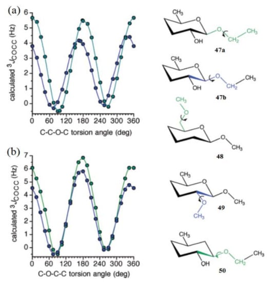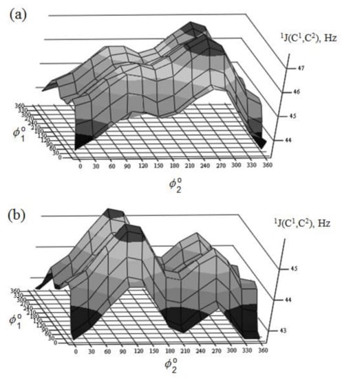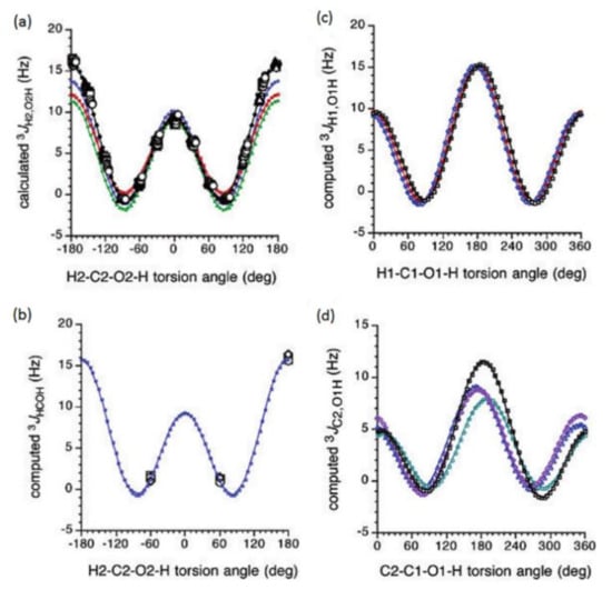 - Klepach, T.; Zhao, H.; Hu, X.; Zhang, W.; Stenutz, R.; Hadad, M.J.; Carmichael, I.; Serianni, A.S. Informing Saccharide Structural NMR Studies with Density Functional Theory Calculations. In Glycoinformatics, Methods in Molecular Biology; Lütteke, T., Frank, M., Eds.; Springer Science+Business Media: New York, NY, USA, 2015; pp. 289–331. [Google Scholar]