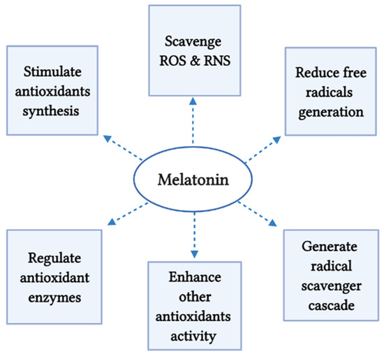 Although the main physiological functions of melatonin are related to hormonal properties, it has been linked to a wide range of functions. One of these essential functions is its ability to act as antioxidant [52].