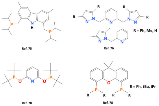 Molecular structures of some pincer ligands in recent literature.