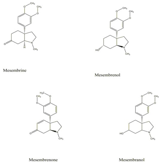 | Antidepressant | Not specified | Mesembrines, Mesembrenol, mesembrenone | [59] |
