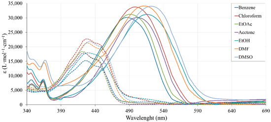 - Grabchev, I.; Moneva, I.; Wolarz, E.; Bauman, D.; Stoyanov, S. Spectral properties of 3-benzanthrone derivative dyes in isotropic solvents, polymer film and liquid crystal. Z. Naturforschung A 2001, 56, 291–296. [Google Scholar] [CrossRef]