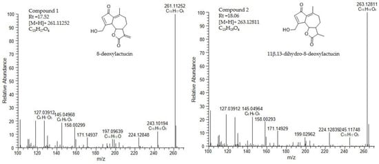- Graziani, G.; Ferracane, R.; Sambo, P.; Santagata, S.; Nicoletto, C.; Fogliano, V. Profiling chicory sesquiterpene lactones by high resolution mass spectrometry. Food Res. Int. 2015, 67, 193–198. [Google Scholar] [CrossRef]