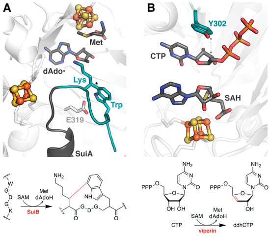 - Dowling, D.P.; Vey, J.L.; Croft, A.K.; Drennan, C.L. Structural diversity in the AdoMet radical enzyme superfamily. Biochim. Biophys. Acta (BBA) Proteins Proteom. 2012, 1824, 1178–1195. [Google Scholar] [CrossRef] [PubMed]
