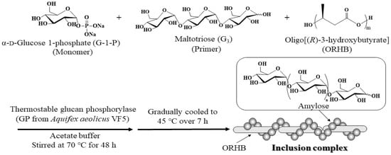 Plausible process for formation of amylose–ORHB inclusion complexes in thermostable GP-catalyzed enzymatic polymerization under conditions at controlled temperatures.